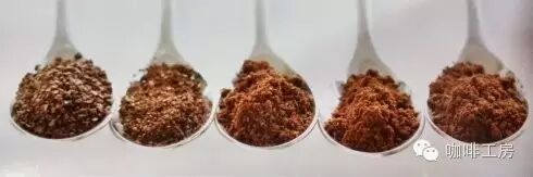 研磨精度分级,之前就已经提到有关研磨粗细对于萃取所带来的不同效果,细咖啡粉可以加快萃取速度,粗咖啡粉则是降低萃取速度。那我们就来看一下由细到粗的精度分级: 1:土耳其式用粉:如果研磨机可以达到的话,这就是最细的咖啡粉了 2:细浓缩咖啡用粉:非常细的咖啡粉,有结块的可能 3:浓缩咖啡用粉:细咖啡粉,有结块可能,常用于浓缩咖啡的制作中 4:细过滤式用粉:介于浓缩咖啡用粉和过滤式用粉之间 5:过滤式用粉:咖啡粉有调味用特级绵糖的质感,与第3级的细粉有很大差别,常用于手冲咖啡 6:粗过滤式用粉:精度与砂糖相仿 7:粗粉:适用于浸泡式冲煮法,例如法压壶。精度和海盐碎屑相似 8:极粗粉:和岩盐大小相似,只适用于长时间的浸泡式冲煮法 9:咖啡块:大块咖啡残片,不适合任何冲煮法