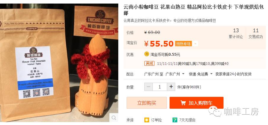 云南小粒咖啡 (铁皮卡种)推荐理由:中国的精品咖啡味风味:花香,香瓜甜,红茶感淘宝连接:https://item.taobao.com/item.htm?spm=a1z10.1-c.w4004-3627045911.24.Xr8FsY&id=535615170690