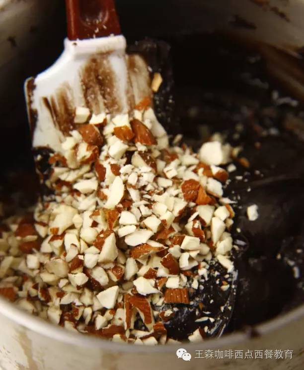 配方分享:巧克力坚果慕斯巧克力坚果黑巧克力:28克牛奶巧克力:28克杏仁酱: 70克杏仁碎:50克制作过程:1.将黑巧克力与牛奶巧克力一起隔水融化。2.杏仁酱加入融化好的巧克力中混合拌匀。3.将整颗的杏仁切碎。4.切碎的杏仁碎倒入巧克力酱中拌匀。5.倒入底部蒙上保鲜膜的模具中铺平,送入冷冻柜中冷冻。