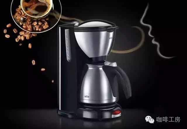 美式咖啡机:常压萃取 通常分为上下两层,上层为装有滤纸或金属滤器的漏斗状容器,下层则为玻璃或陶瓷咖啡壶。美式咖啡机也是使热水经过咖啡粉流入下方咖啡壶内,萃取出咖啡,但区别在于热水是常压的。除了可以烹调咖啡外,还可以泡茶。