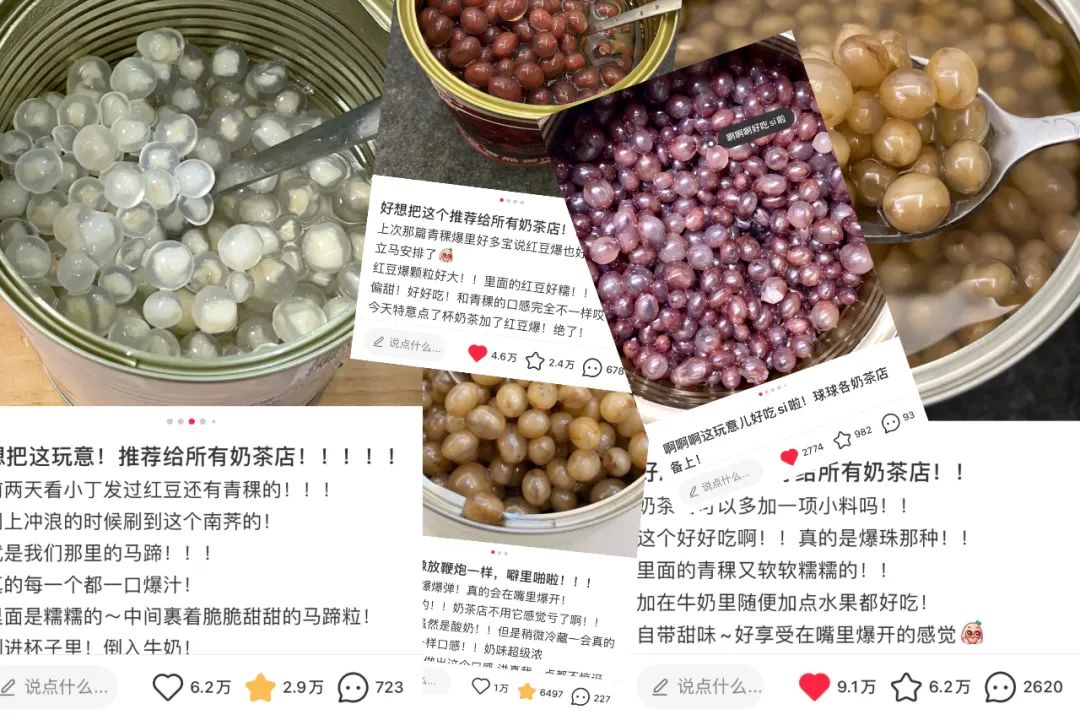 7月一款新的小料被推出——爆爆珠(点蓝字,了解爆爆珠:20W网友力荐茶饮店上这款小料)。