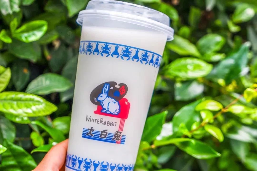 奶糖与茶饮的跨界合作,图片源自新上海小资美食外卖袋和杯子都印有经典的大白兔图案,奶茶有清爽的柠檬口味,也有口感浓郁的奶茶口味,定价在20元左右。目前由于购买人数较多,每人限量2杯。