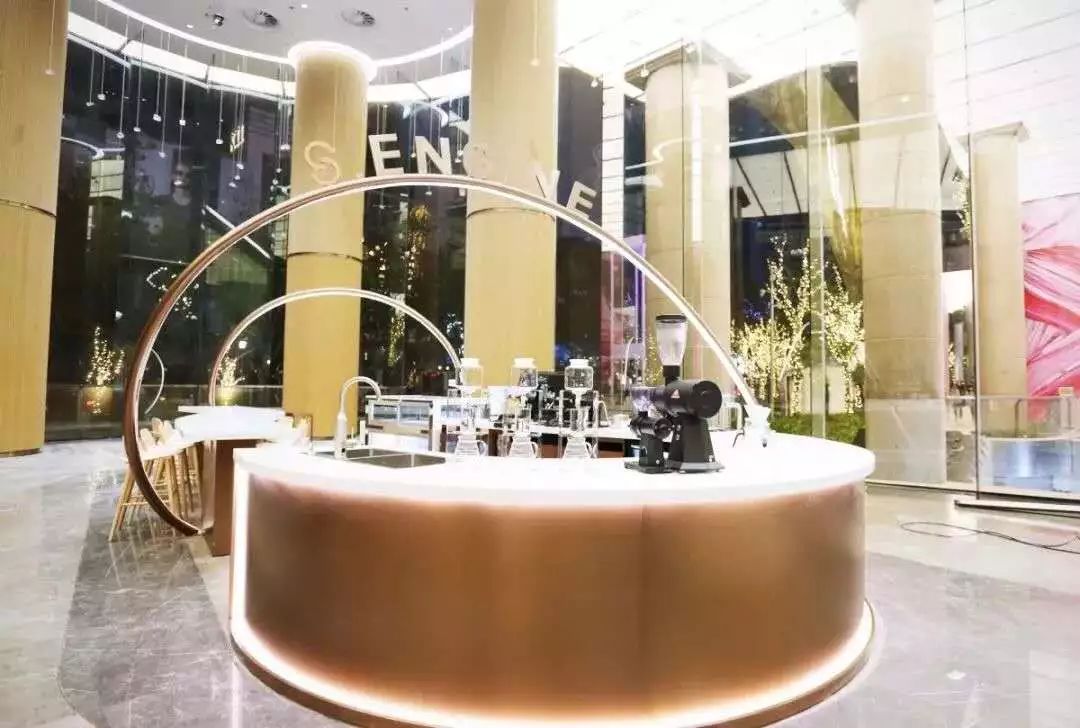 咖啡师与消费者间的对话环球港店在环球港正中心的位置。做这个设计的时候,要表达一个咖啡态度,我们希望这个空间留得住人,能够有更多快乐的体验感。但在购物中心,没有办法把山、水、树放进去。在日本有很多抽象的做法,会把树木抽象成一根一根的钢条,把地面做成像河流一样的马赛克。我们觉得不错,可还是缺乏一点力度。做了很多购物中心的研究后,我们发现,购物中心起源于上个世纪20年代,购物中心创始人在晚年的时候说,购物中心文化并不是现在的概念,更加像维也纳广场,有一个大平台,有一个穹顶可以遮风挡雨,大家可以在里面自由交流。但现在,进了购物中心之后,人与人之间没有任何交流和社交,大家都是相对独立的。