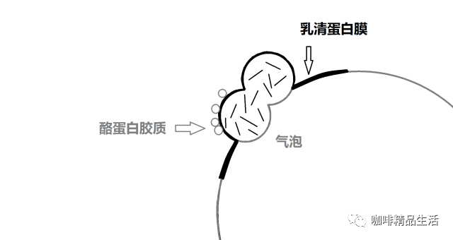 奶泡原理 构造与形成 奶泡就是由牛乳中的乳清蛋白膜包裹注入牛乳中的空气,形成单个的气泡体(泡沫起泡性)。在气泡体周围覆盖含有表面活性剂的酪蛋白胶质,并在气体与液体交界面形成一定的表面张力,以稳固泡沫的形态,不会导致泡沫破裂(泡沫稳定性)。