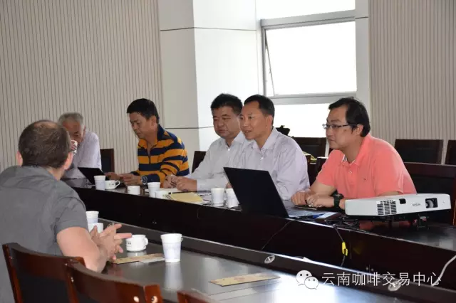 应云南咖啡交易中心有限公司邀请,CQI(Coffee Quality Institute,咖啡品质学会)执行董事DavidRoche先生于2015年11月7日上午抵达普洱,与茶叶与咖啡产业局局长卢寒、副局长刘标、云南咖啡交易中心董事长曹荣根、常务副总经理舒洋就云南普洱精品咖啡发展战略,进行了沟通和交流。卢寒局长对David Roche先生亲临普洱表示热烈欢迎和衷心的感谢并向他介绍了近几年普洱咖啡的种植情况和生产情况。同时,David Roche先生对世界主要咖啡产区的种植和生产现状做了详细介绍。云南咖啡交易中心常务副总经理舒洋向David Roche先生介绍云南咖啡交易中心有限公司理念、云南精品咖啡加工园区服务功能、运营模式以及未来的发展方向,双方对合作前景颇感兴趣,并达成了共同为东南亚咖啡产区设计整体规划和培养人才战略合作的共识。