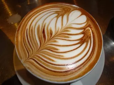 这篇文章张老师很久之前就想写了,希望大家能够耐心地看完,谢谢!拉花是在原始的卡布或者拿铁上做出叶子或其他图案的工艺。 像这样