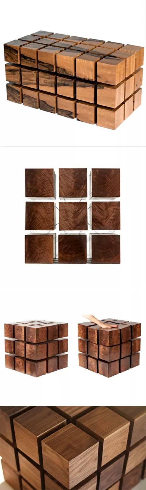 4、「磁悬浮咖啡桌」下面这款就是真的悬浮了。由RocketPaperRobot为我们带来了一款磁悬浮咖啡桌。造型像是一个魔方,由实木块组成,这些木块里面镶有磁铁,木块之间通过细铁丝连接。当你用手推桌子时,桌子会晃来晃去。