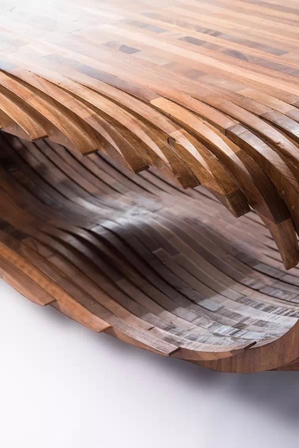 10、红木咖啡豆咖啡桌受到咖啡豆的外形的启发,来自波多黎各的设计师 Javi Olmeda 设计了一款红木咖啡豆咖啡桌。桌子由红木条拼接而成,所有木条并排出一个巨型咖啡豆的造型。