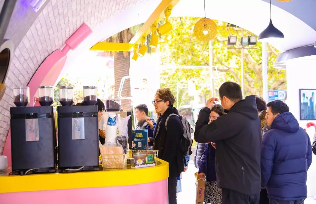 湃客咖啡快闪店:造梦咖啡馆这家快闪店占地120平方,卧倒的“湃客咖啡杯”的创意外型格外引人瞩目,活动现场除了有投篮大赛、找湃客锦鲤等互动外,还推出了未上市的3款新品:黑糖拿铁、草莓拿铁、爱尔兰拿铁,新品每天提供1200杯试饮。