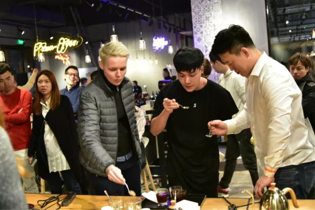 季军:张玲滋开心大趴体感谢比赛正值Hotelex展会期间,让我们有机会与全球咖啡的顶尖大咖与爱好者共聚上海。我们有幸邀请了数位咖啡届的大咖来担任大赛评委。这次世界爱乐压大赛的上海站已经完全变成了我们心目中 咖啡人的大狂欢!大家来看看这些大咖你们都认得出吗?