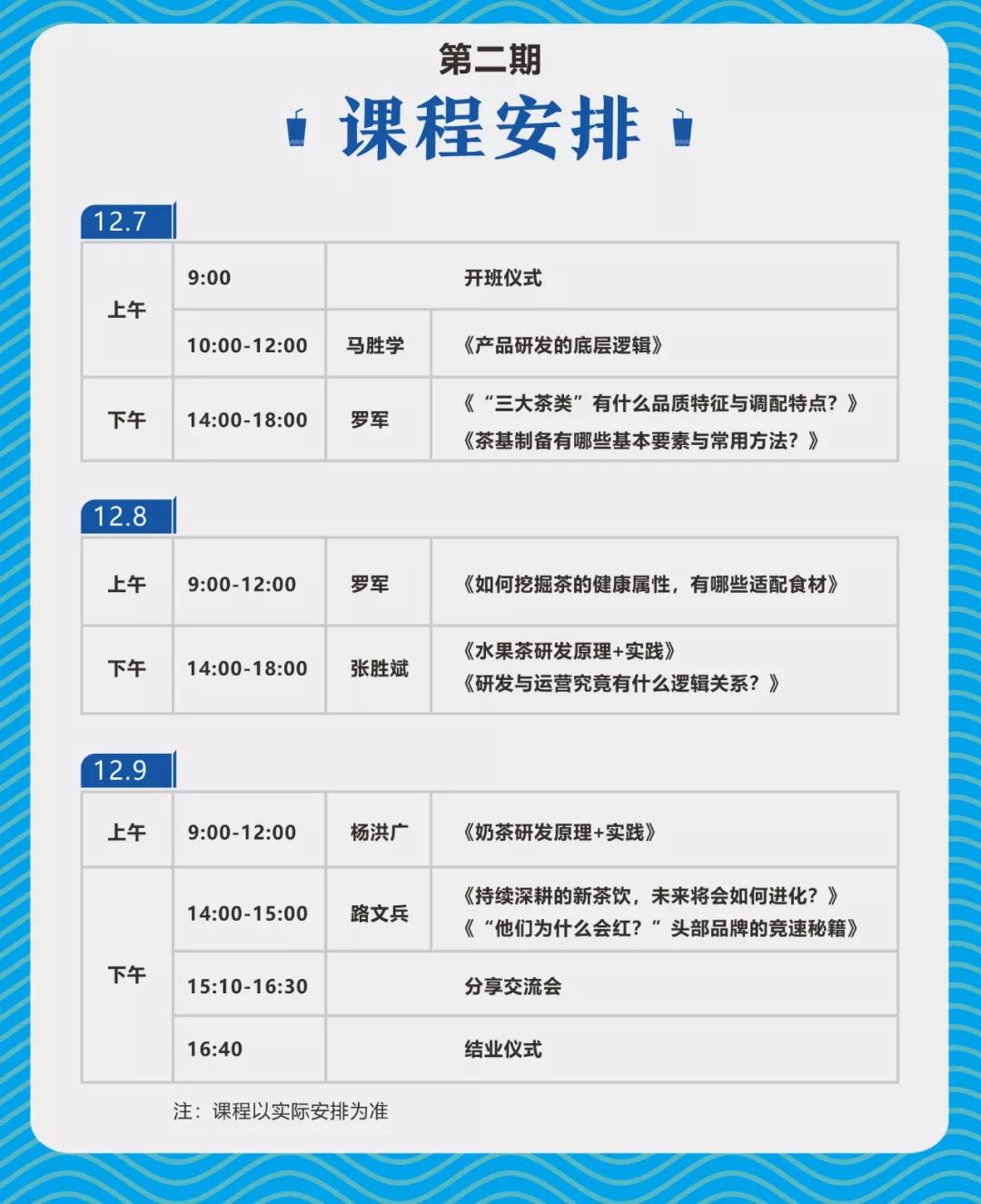 识别上图二维码,即可报名不知道你发现没有。这两年火起来的新茶饮品牌,有一个特点—— 总有那么一两款产品深入人心,让本就喜欢茶饮的念念不忘,不关注的也跃跃欲试。产品能力是品牌的底层能力。然而什么是好产品?怎么研发好产品?怎么持续研发好产品?12月7日——9日,《新茶饮研发必修课》第二期,你有一个机会弄明白。第一期现场实图感受一波~还在犹豫的,来看看第一期听课小伙伴的反馈:友情提示:第二期的名额,所剩无几了。PS:点击阅读原文可直接报名中国饮品创变力TOP50:2019万有饮力年度大会:— END —统筹:啡姐 | 编辑:啡姐 | 视觉:JIRFEI文章为咖门原创,未经授权严禁转载。