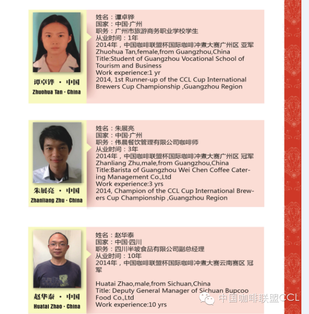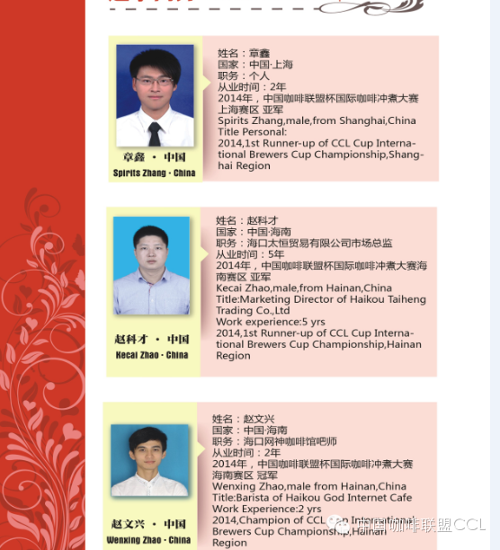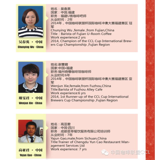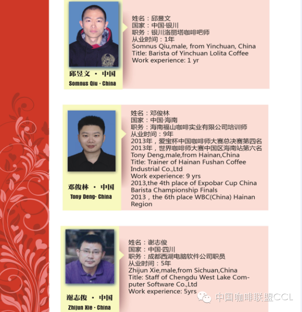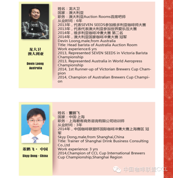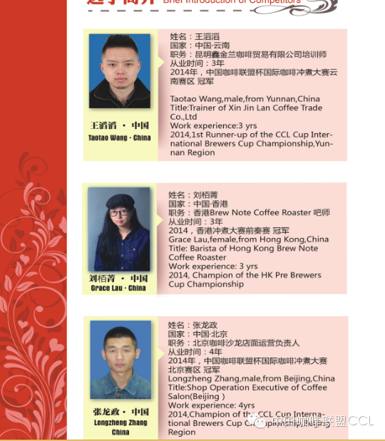 继“评委,去哪儿!”之后,新一期的“选手回来啦!”也如期与大家见面啦。先让我们看看本期,也就是参加中国咖啡联盟杯国际咖啡冲煮大赛的选手们有哪些吧。哇哦,数数算算,一共有32名选手耶,而且各各都是棒棒哒,萌萌哒小伙伴,真是无限期待他们接下来几天的精彩表现。21号,比赛正式开始,2天初赛,将选出6名perfect Competitors,进入23号的决赛。无限期待谁会摘得比赛桂冠,拿走那10,000的大奖金。All in all,天天都精彩,只为你等待。快快加入我们吧!好了!我们已经准备好了!接下来的三天,欢迎各方朋友前来观赛交流!