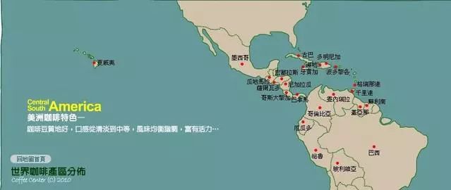 洪都拉斯咖啡具有丰富醇厚的口感,味道不涩不酸,醇度和香度都很高,相当适合新手。洪都拉斯咖啡可以随着烘焙程度的不同,引出多层次的风味。中度烘焙可以将豆子的甜味发挥到极致,而深度烘焙则使苦味增强,但甜味并不会消失。一般来说,中度烘焙口感最好,有丰富独特的香气,深受洪都拉斯咖啡爱好者的青睐。 ■巴拿马(中美) 巴拿马咖啡因瑰夏而驰名世界,究其原因,它与巴拿马得天独厚的自然地理条件密不可分。巴拿马是中美洲最南部的国家,东临加勒比海,西面太平洋,北邻哥斯达黎加,南与哥伦比亚接壤—它是连接著南北美洲的重要地峡。在这样的地理位置因素影响之下,巴拿马具有复杂多变的微型气候,也造就出风味独特的巴拿马咖啡。