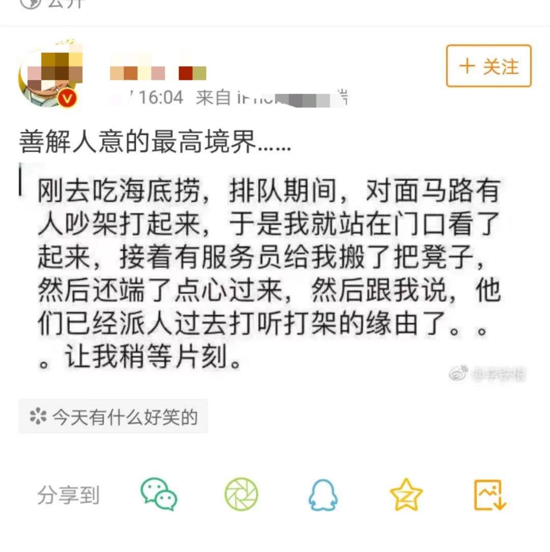 海底捞——服务游戏相结合说到排队,怎么能少的了海底捞呢?前段时间,某知名博主一条“善解人意的最高境界”,海底捞火了。内容是:在海底捞排位时,对面马路有人吵架打起来,于是站在门口看起来,而服务员就搬了把凳子,还端了点心,并说他们已经派人打听打架缘由了,请稍等片刻。