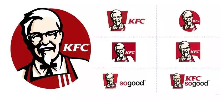 1978年将人物画像从右边改至左边1991年开始,使用名称缩写KFC,并且采用红色与线条相结合,用更多的元素加重品牌形象。