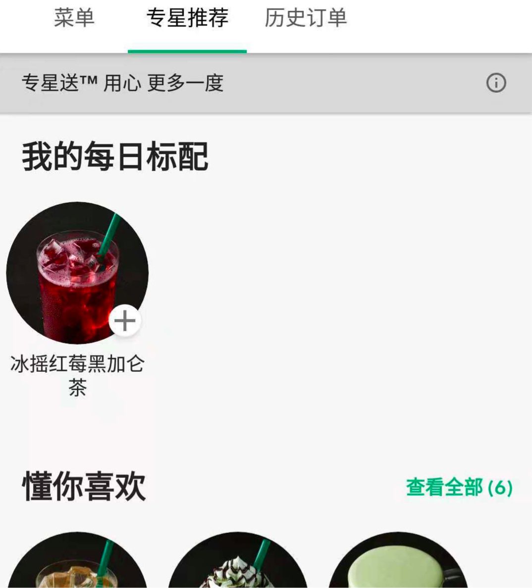 点单感受:星巴克专属感强,瑞幸操作快捷星巴克APP点单,“专星送”的专属感受非常明显。如果不是星巴克会员的伙伴们需要注意了,要体会一把“专星送”请移步饿了么。如果你本身是星巴克会员,感受就相当友好,不仅会有常点“我的每日标配”,令你能实现快速下单,还会根据顾客以往的喜好推荐了几款产品。对于有“选择恐惧症”的朋友们来说,是很体贴的功能。