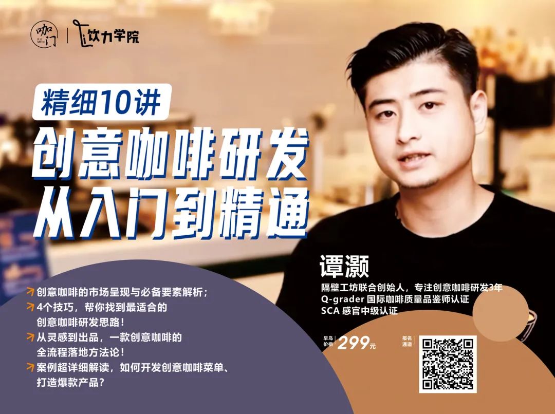 精细10讲|创意咖啡研发从入门到精通,长按识别下图二维码了解课程详情: