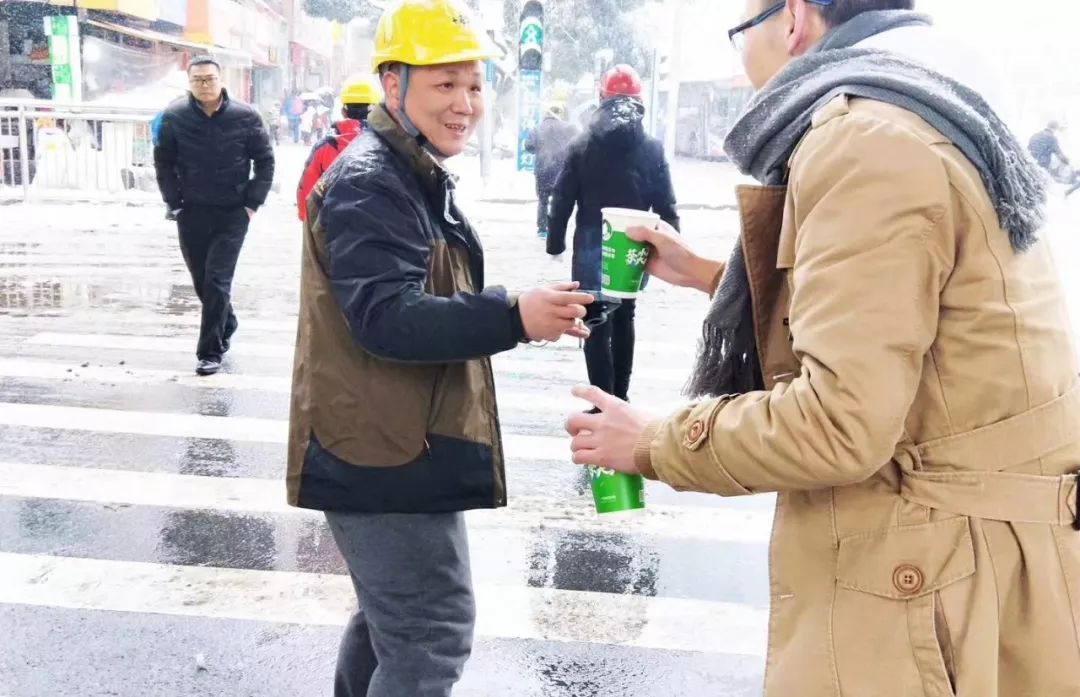 想必路过的人看到,会很温暖甚至专门带上热饮送给路边的环卫工、交警等工作人员,让人在寒风中倍感温暖。