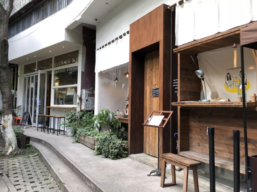 为城市增彩的花车与其说是在卖花,这辆蓬勃的花车更像是整体环境中不可或缺的装饰品——周边像一个郁郁葱葱的小公园,没有任何商业化的建筑或者高楼,满眼只有绿意。而無早所在的这条青莲上街,本就是一条躲在成都繁华背后的悠闲街区,来往行人安然自得。正如赵雷歌里所唱:让人想要在这样的街头走一走。Emmm~ 开在这种地方的咖啡馆,还未进店,就把顾客的文艺之心融化开了。