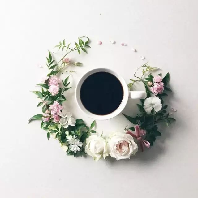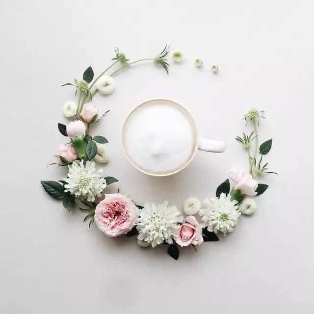La Fee De Fleur·每次喝咖啡都会用花朵装饰一番,然后拍个照片发朋友圈 ···如此好看的咖啡照,真的非常治愈啊!▼