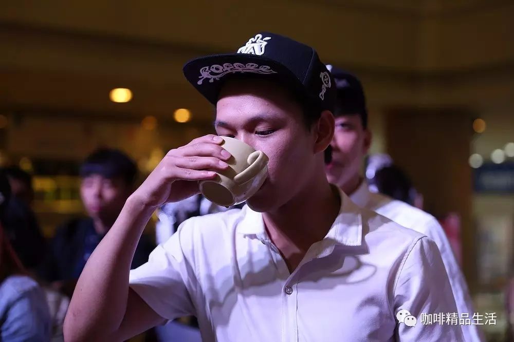 而第二天的六强赛就更加有意思了,小组赛胜出的6位“擂主”,抽签选出第一个“挑战者”,挑战者可以选择小组赛胜出的其他“擂主”任一选手作为挑战对象,每人在10分钟内出品三杯同样图案的拉花作品,评委根据一致性、完成度、图案复杂度等进行表决投票,同样是胜者留下,并指定下一个挑战对象上台进行竞技,而输的将咖啡喝下去或请现场观众帮忙喝掉然后下台,直到决出拉花擂台赛终极“霸主”;这个阶段干的可就不止一杯拿铁,而是三杯,所以现场的观众甚至评委也主动帮输的选手将咖啡干掉,当然最终一杯咖啡都没机会喝到的就成为冠军咯!【六强选手风采】
