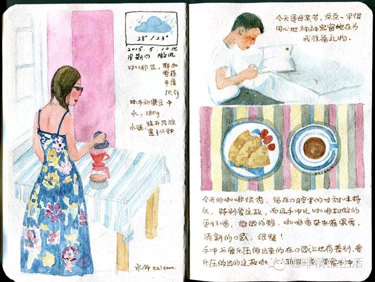 我们都是咖啡星人,每天离不开咖啡,把每天品尝的不同咖啡,画下来做成日记本,这本身就是一件很酷的事,这事,插画师亦邻做到了