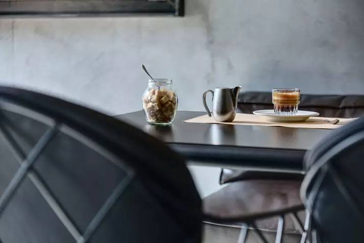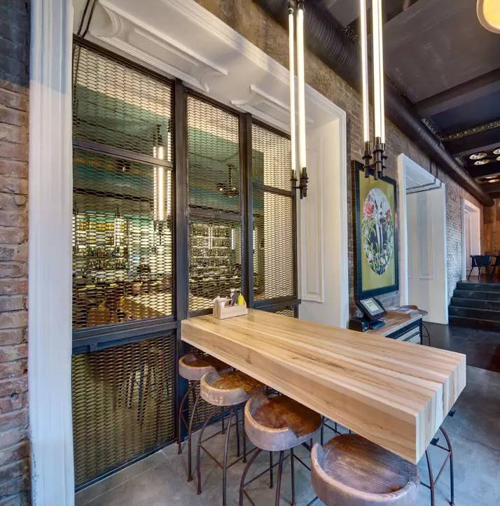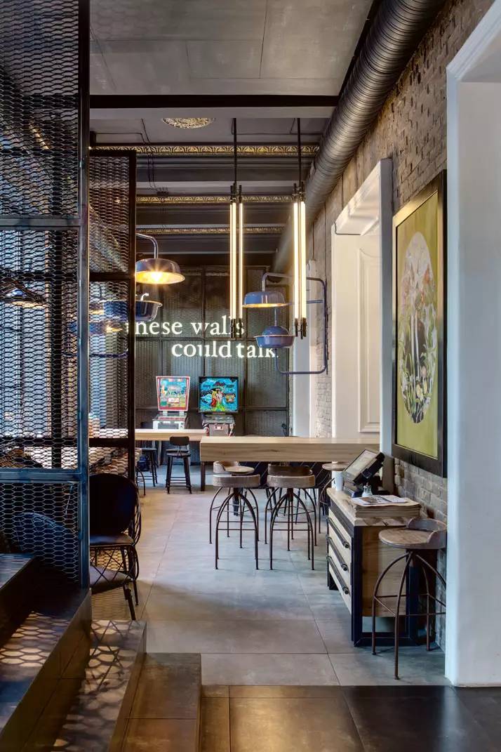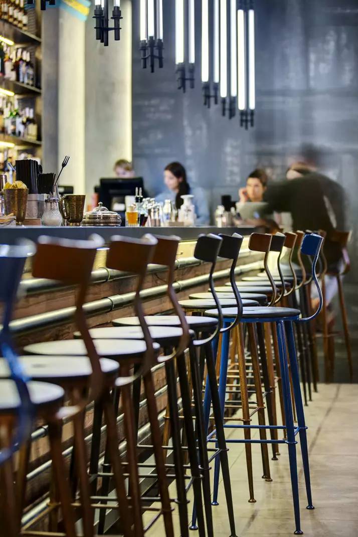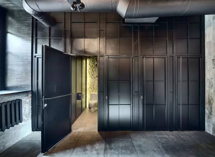 混凝土,黑色油漆的铁和木材是用于室内的主要材料,一个调色板,不可避免地创造一个工业和沉重的感觉,但非常触感和诱人。室内工业气氛由刚性几何结构和装饰元素来强化,以及从管式霓虹灯垂下发出的刺耳的光线,这是Makhno Studio设计工作室特别定制的。