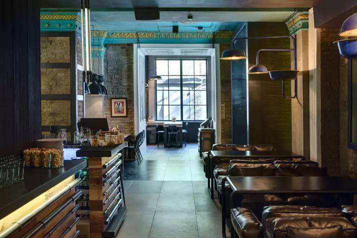 Dogs&Tails由Makhno Studio设计打造,位于乌克兰基辅。其所在的建筑,原先是一个犹太教堂,后来成为一个小电影院。Dogs &Tails;和邻近的餐厅及咖啡牛奶吧是姐妹店。