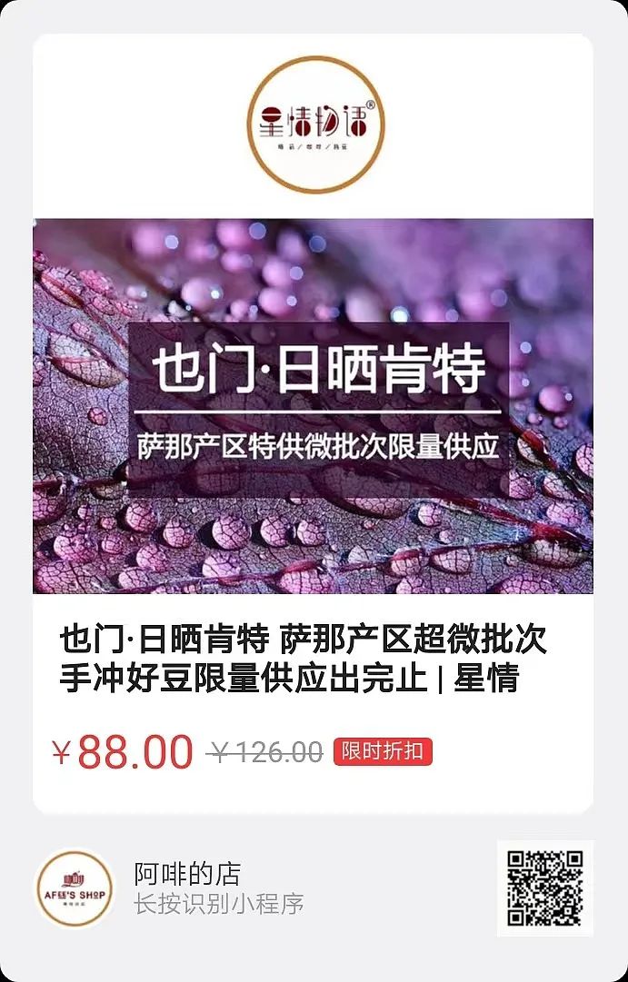 买好咖啡,上阿啡的店就购了天天都是好星情 :)今天是要正常上班的“星期天”我们给大家准备了一份难得福利来自也门的精致日晒肯特手冲好豆超值价限量30份出完即止请看好就长按下图识别二维码速度带走