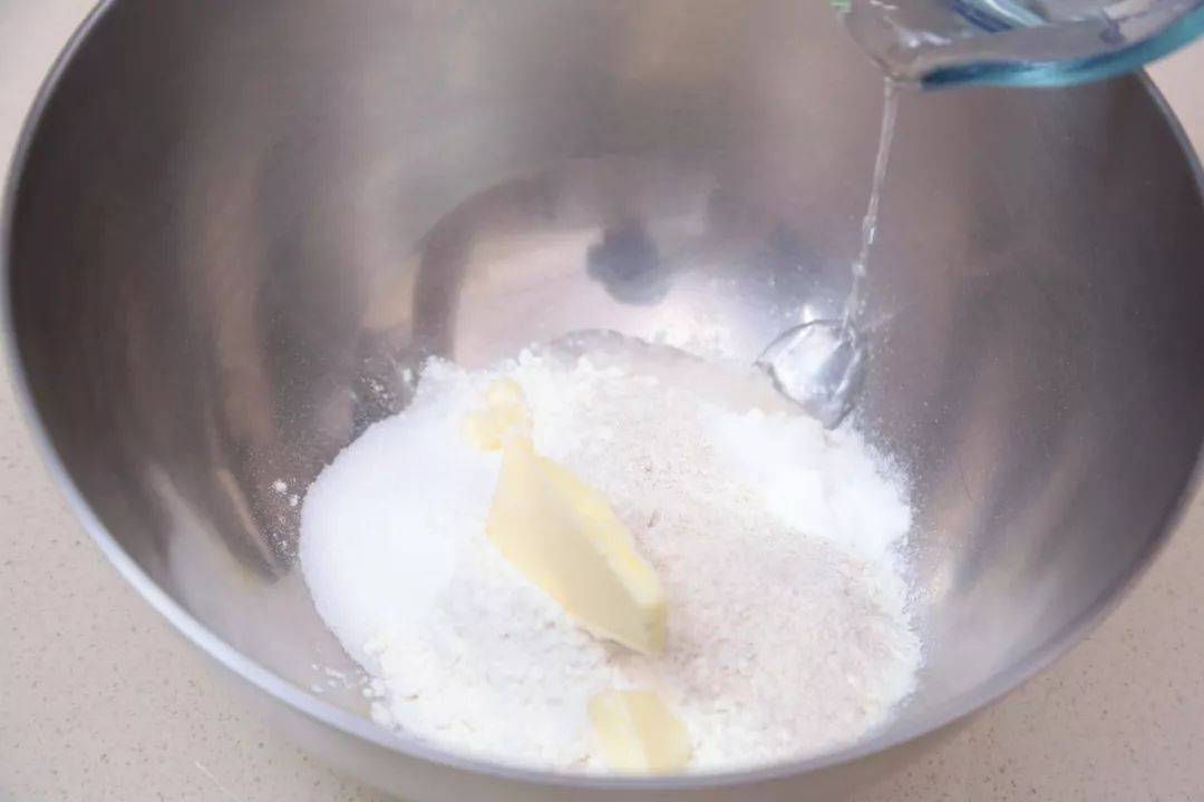 准备工作:无盐黄油提前室温软化。①把油皮材料混合均匀成表面光滑的面团,盖上保鲜膜,静置20分钟。
