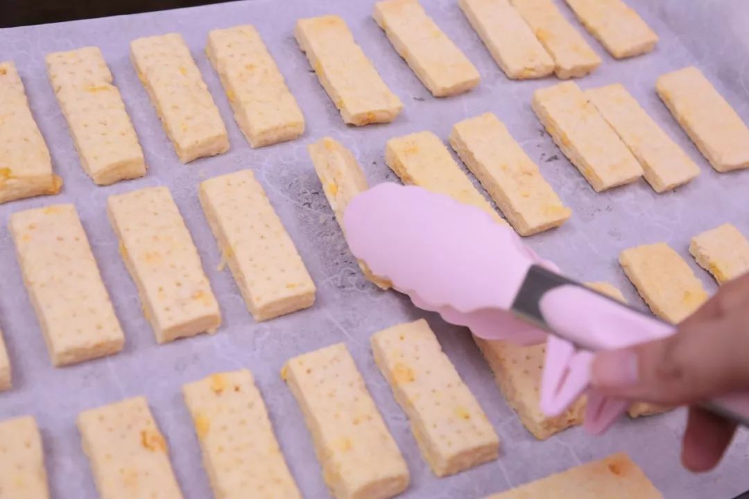 ⑧将饼干面皮整齐放入烤盘中,以上下火180度烘烤10分钟,再取出翻面烘烤10分钟即可。