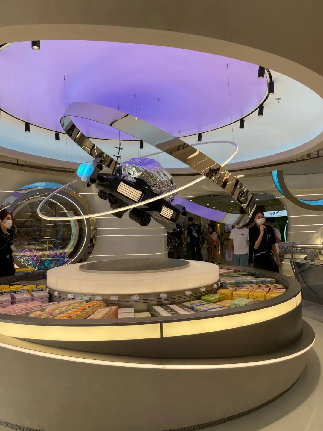 再来说沉浸式体验的感觉从入口时的超时空旅行舱观测点再到穿梭隧道折叠时空店内高级感和未来感十足这家店不是卖面包蛋糕是卖我们的未来