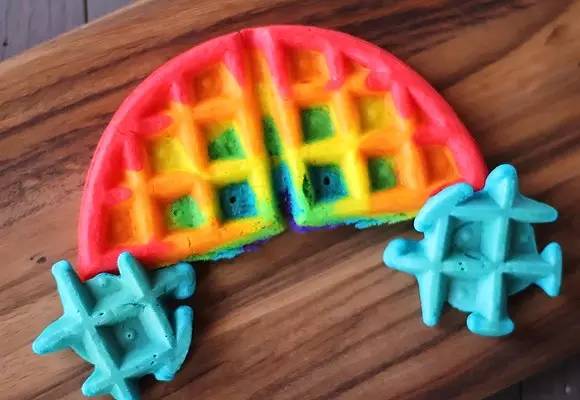 彩虹蛋糕是外貌党必备课哦!但你知不知道,除了彩虹蛋糕,厨房里的一切美食都可以做成彩虹色哦!动手试试吧!——彩虹华夫饼——