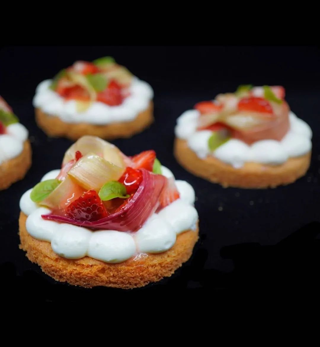 ↑点击"世界烘焙配方"关注cription-url="https://mmbiz.qpic.cn/mmbiz_jpg/PR7JPt3C5zawKVqAvnVjgkJkKicO3wLSfvxkngAAoDWUqJLBBmuPX3tz9EErvItMfV2IGR6HnCYhZnibRA6KM6Ww/0?wx_fmt.jpeg" data-cropselx1="0" data-cropselx2="578" data-cropsely1="0" data-cropsely2="636" data-ratio="0.74921875" data-s="300,640" src="http://www.yinpinjie.com/file/upload/202211/08/173807601.jpeg" data-type="jpeg" data-w="1280" />这就是此季节甜点中最常登场的大黄如果当地买不到,可以淘宝“大黄茎”下图是另一个法甜中常用的“香茅草”也叫柠檬草、柠檬香茅同样,本地无可以淘宝购这是成熟采下的状态今天的配方中就应用到了这两个家伙今日配方来自chefRenaud Andreuxrdfq☜今日配方下载提取码每天20:30更新,每篇文末左下角“阅读原文”点击进入均可下载当日配方、视频或图片文件,省去大家自己复制黏贴的麻烦,配方文件无任何水印设置;“提取码”因近日度娘抽风搞怪,暂不提供无码下载服务,只能按她的规矩来,所以下载之前先把这个“提取码”复制一下~另外,部分地区可能因为某些不可抗原因导致无法直接点击阅读原文,可以在文末的【置顶留言】中找到链接和提取码。香茅草莓大黄挞ByRenaud Andreux配方量:60个(直径8.5CM)布列塔尼酥脆饼【2329.4克】630 克……黄油585 克……细砂糖 16 克……海盐(盐之花)250 克……蛋黄840 克……面粉 8.4 克……泡打粉制作:1、将黄油与细砂糖和盐混合搅打。2、加入蛋黄,最后再将混合过筛的面粉和泡打粉加入搅拌均匀。3、冷藏松弛至少一小时后,擀压至8毫米厚度。4、裁切放入直径8.5CM的圆环模具内,入烤箱以160℃烘烤约15分钟。大黄草莓香茅果酱【742克】416 克……大黄212 克……鲜草莓 2 个……香茅草茎 16 克……NH果胶粉 96 克……细砂糖制作:1、将大黄清洗干净后,切成2CM的小段状。2、将草莓和香茅草茎切为同样大小。3、将全部材料放入真空密封低温蒸煮袋,在60℃中煮90分钟。4、材料全部煮软后,将水果大黄过滤出来,保留蒸煮汁留作稍后使用,将大黄茎挑出来。5、将过滤出来的草莓、大黄搅打均匀,待用于组装使用。柠檬草香缇奶油【1524克】1360 克……35%稀奶油 1 个……香茅草茎 108 克……细砂糖 55 克……吉利丁冻(200 Bloom)制作:1、将稀奶油与切段的香茅草茎一起加热。2、离火加盖闷浸30分钟后将香茅草过滤掉。3、再次加热此稀奶油与细砂糖,加入吉利丁冻拌融。4、快速降温后,冷藏。柠檬草奶油【1519克】800 克……牛奶 1 个……柠檬草茎120 克……蛋黄200 克……细砂糖 60 克……玉米淀粉 88 克……吉利丁冻(200 Bloom)250 克……黄油制作:1、将牛奶与切拌的香茅草茎一起加热,离火加盖闷浸30分钟或过滤。2、将细砂糖与玉米淀粉混合拌匀后加入蛋黄搅打至泛白。3、再次加热“步骤1”过滤出来的牛奶,加入“步骤2”搅拌并加热至85℃(即英式奶酱的方法)。4、将吉利丁冻和黄油加入,用均质机搅拌乳化均匀,冷藏待用。大黄草莓香茅啫喱适量……“大黄草莓香茅果酱”过滤出来的汁液制作:1、将制作“大黄草莓香茅果酱”时保留的汁液取出。2、搅拌均质后装入裱花袋中待用。水煮大黄茎【1500克】1000 克……水 500 克……细砂糖适量 克……大黄茎制作:1、将之前几个配方中用过的香茅草清洗干净。2、与水和细砂糖一起混合加热。3、将大黄茎清洗去皮。4、然后将“步骤2”的香茅糖浆倒在清洗去皮后的“大黄茎”上,静置2-3分钟。5、将大黄茎过滤出来,用厨房纸巾吸掉多余的糖浆。柠檬镜面果胶【815克】500 克……水100 克……葡萄糖浆175 克……细砂糖 20 克……NH果胶 20 克……柠檬汁制作:1、将水和葡萄糖浆混合加热至45℃,然后将提前混合拌匀的NH果胶和细砂糖加入。2、搅拌并煮沸后,加入柠檬汁拌匀。3、再次煮沸3分钟后离火静置待用。组装与装饰1、将“大黄草莓香茅果酱”挤在“布列塔尼酥脆饼”上。2、将“柠檬草香缇奶油”沿着边缘挤若干尖端向内的光滑水滴形。3、将“柠檬草奶油”用球桨搅打至顺滑后,挤在中心位置。4、再将“大黄草莓香茅啫喱”挤一小部分在奶油上。5、然后将切瓣的草莓和“水煮大黄茎”装饰在顶部表面。6、最后涂刷“柠檬镜面果胶”并点缀几个可食用绿植嫩芽叶。喜欢原汁原味继续CHEF的英文版rdfq☜今日配方下载提取码每天20:30更新,每篇文末左下角“阅读原文”点击进入均可下载当日配方、视频或图片文件,省去大家自己复制黏贴的麻烦,配方文件无任何水印设置;“提取码”因近日度娘抽风搞怪,暂不提供无码下载服务,只能按她的规矩来,所以下载之前先把这个“提取码”复制一下~另外,部分地区可能因为某些不可抗原因导致无法直接点击阅读原文,可以在文末的【置顶留言】中找到链接和提取码。RHUBARB,STRAWBERRYANDLEMonGRASSTARTELETTEByRenaud Andreuxfor 60 tartelettes of 8.5 cmdiameterBRITTANY SHORTBREAD630 g butter585 g caster sugar 16 g salt “fleur de sel”250 g egg yolks840 g flour8.4 g baking powderProcess:1.Mix butter with sugar and salt.2.Add yolks, finishing with flourand baking powder.3.Refrigerate for at least 1 hourbefore rolling out to 8 mm thick.4.Cut and place into 8.5 cmdiameter rings. Bake at 160°Cfor 15 minutes.RHUBARB-STRAWBEDRRYAND LEMonGRASS COMPOTE416 g rhubarb212 g fresh strawberries 2 u lemongrass stems 16 g pectin NH 96 g caster sugarProcess:1.Carefully wash rhubarb beforecutting into 2 cm lengths.2.Cut strawberries and also cutlemongrass stems length ways.3.Place all listed ingredientsinto a sous vide bag and 