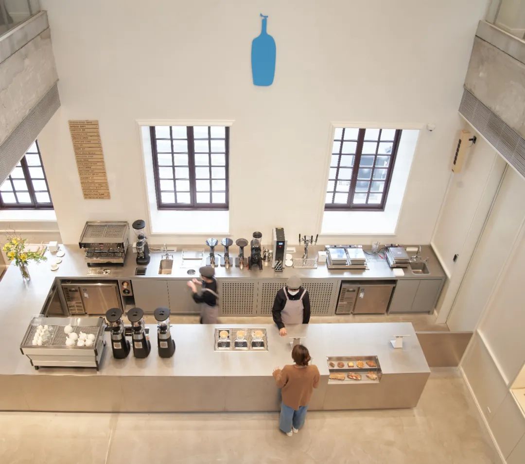 除此之外,蓝瓶咖啡每家门店的空间和环境设计,都能为当地客人带来独特体验。品牌与设计师保持默契合作,将彼此哲学观和价值观结合,再结合当地的地理、人文环境,共同传递给消费者。贴心服务,同样是品牌基因中重要的部分。