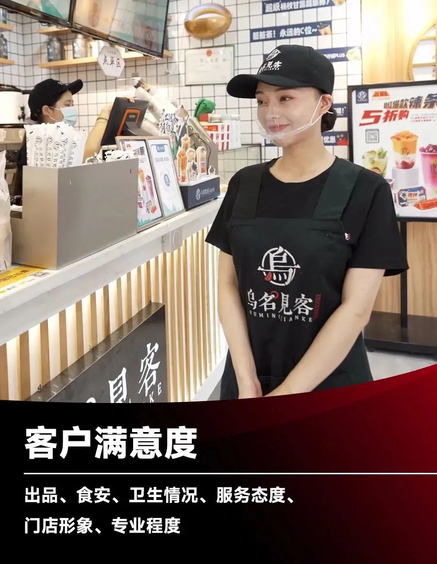六个维度影响客户满意度根据门店客单价的差异,对于这六个维度的要求是完全不同的——客单价越低,越关注出品。随着客单价的上升,对于其余几项的要求开始提升。客单价超过300元以上,会对整体形象、环境及人员的专业程度开始有更高的诉求。所以,越是客单价高的品牌,在前期的基础准备就需要越清晰和扎实。客单价低的品牌门店,比如客单价20元以内的轻餐,客户满意度主要集中在出品、食安、卫生这三个方面。随着消费者对于美好生活的追求,门店形象和服务态度也开始成为轻餐重要的两个维度,在这方面,茶颜悦色已成为整个轻餐的领先品牌。17~18元的客单价,地道中国风的店面形象和超热情的服务态度,加上稳定的出品品质、定时的卫生和食安检查对外公布,让其的客户满意度成为行业的天花板。这也是为什么茶颜成为了中国茶饮行业的翘楚品牌的原因。基于这几个维度,我们就可以来进行店长考评的细化了。出品、食安、卫生、服务,这些都可以称之为标准化执行,标准化执行程度是影响门店客户满意度的最重要维度。这样我们就可以把这些需要执行到位的标准进行梳理,按照最后执行的结果对店长进行考评。除此之外,会影响客户满意度还会有商品的稳定供应(订货)、人员变动等因素带来的出品效率低、标准执行不到位等。基础员工的提升影响客户满意度,这些维度基本上可以归纳为两点:一是基础管理工作的执行到位;二是人员训练的效果保障。所以这两项不仅仅会直接影响标准化的落地,还有可能会直接导致门店营收的快速下降。我们开设一家门店,最终还是要有投资回报,利润对于我们的门店来说就是最直观有效的数据。餐饮门店中影响利润还有一个方面——损耗和成本控制。因为需要现场制作,并且人员的流失带来训练的难度,必然会出现制作过程中的损耗,这样导致基础成本的变化,最终影响门店的利润。