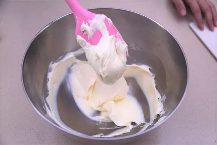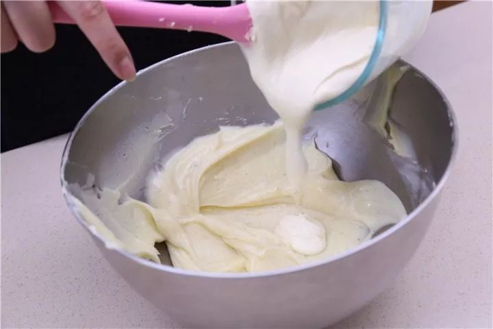 ③奶酪糊中加入先前制作的酸奶油,拌匀。
