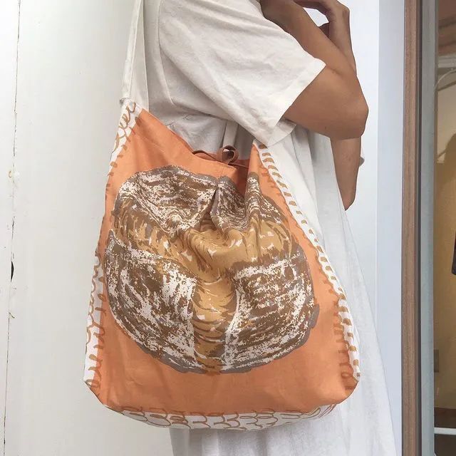 gochisou的面料,一开始使用的是手工印花,传统的染色方式呈现了漂亮鲜艳的色彩。后来还加入了刺绣面料和刺绣布贴,气质这方面可是说是拿捏到位了。如果考虑到价位的话,机器印刷的系列接受度也很高。衣物、配饰、包、日用品……点缀上各种可口的吐司、可颂、可露丽等,形成了独特的标识。她将品牌理念贯彻始终,也是寄望于让人们重新思考美食带来的幸福感。通过她们设计的纺织品来让人们忘记忙碌,珍惜与心爱的人一起享用美味佳肴的美好时光。在如今的时代,什么都要讲究附加值。面包除了吃,其实也逐渐成为了一种符号,将其放大并巧妙应用,可以带来更多新鲜的吸引力。比如今天列举的就可以看成是文创周边领域的探索。插一句,说起文创周边产品,星巴克可以说是YYDS!以咖啡为载体进而推出了咖啡杯的周边,每一次的曝光都能引起大量的关注,且溢价之高,又一次刷新我的眼界。