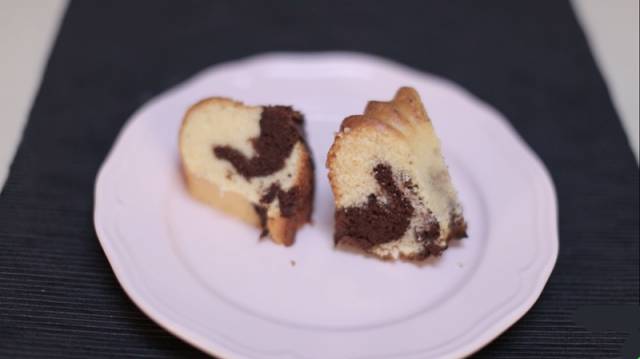总结:面糊在模具里的时候搅拌太温柔了,因为担心烤出来的面包会完全花掉所以没有用力,结果大理石看起来不是很天然!!!就当成双色磅蛋糕吧!!!
