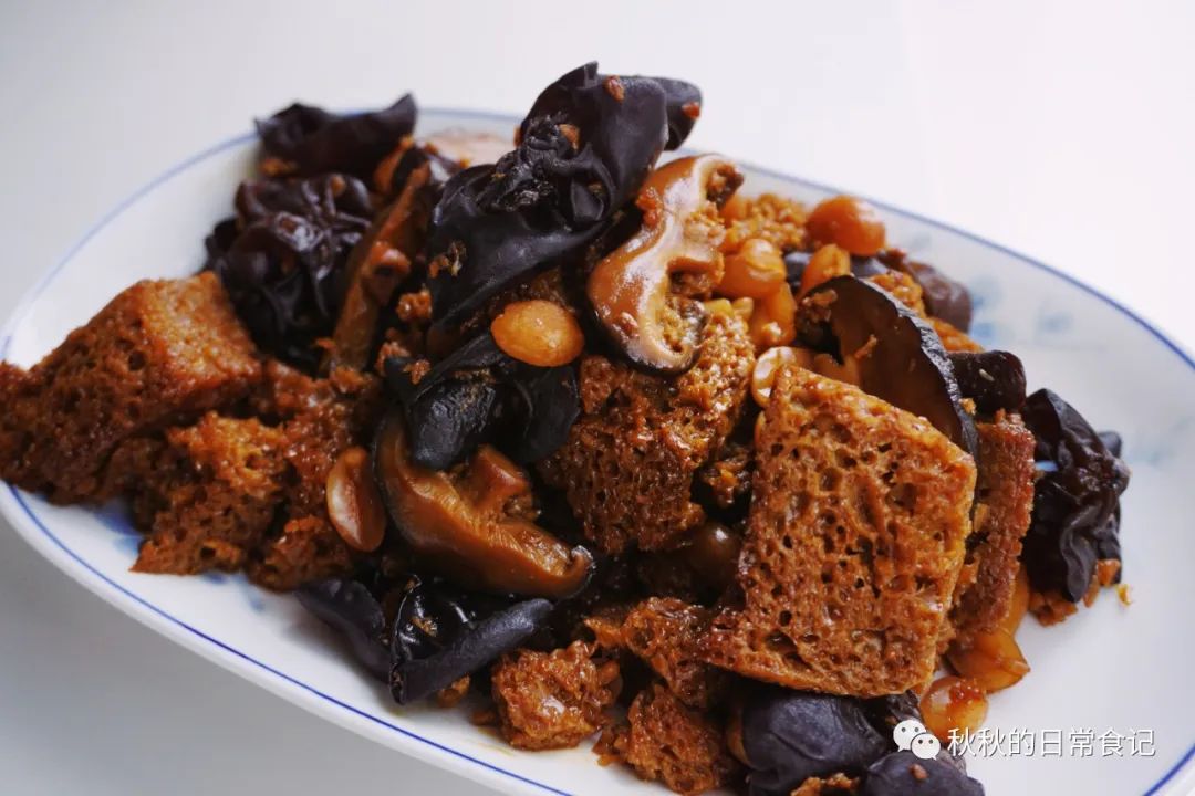 这是一道全部用干货就可以做成的简单家常菜,红烧的调味料也就是家家都有的生抽、老抽、冰糖。平时家里买些烤麸干、干香菇、木耳等等备着,不方便出门的时候随手就能变出一道美味了!(加油大家)