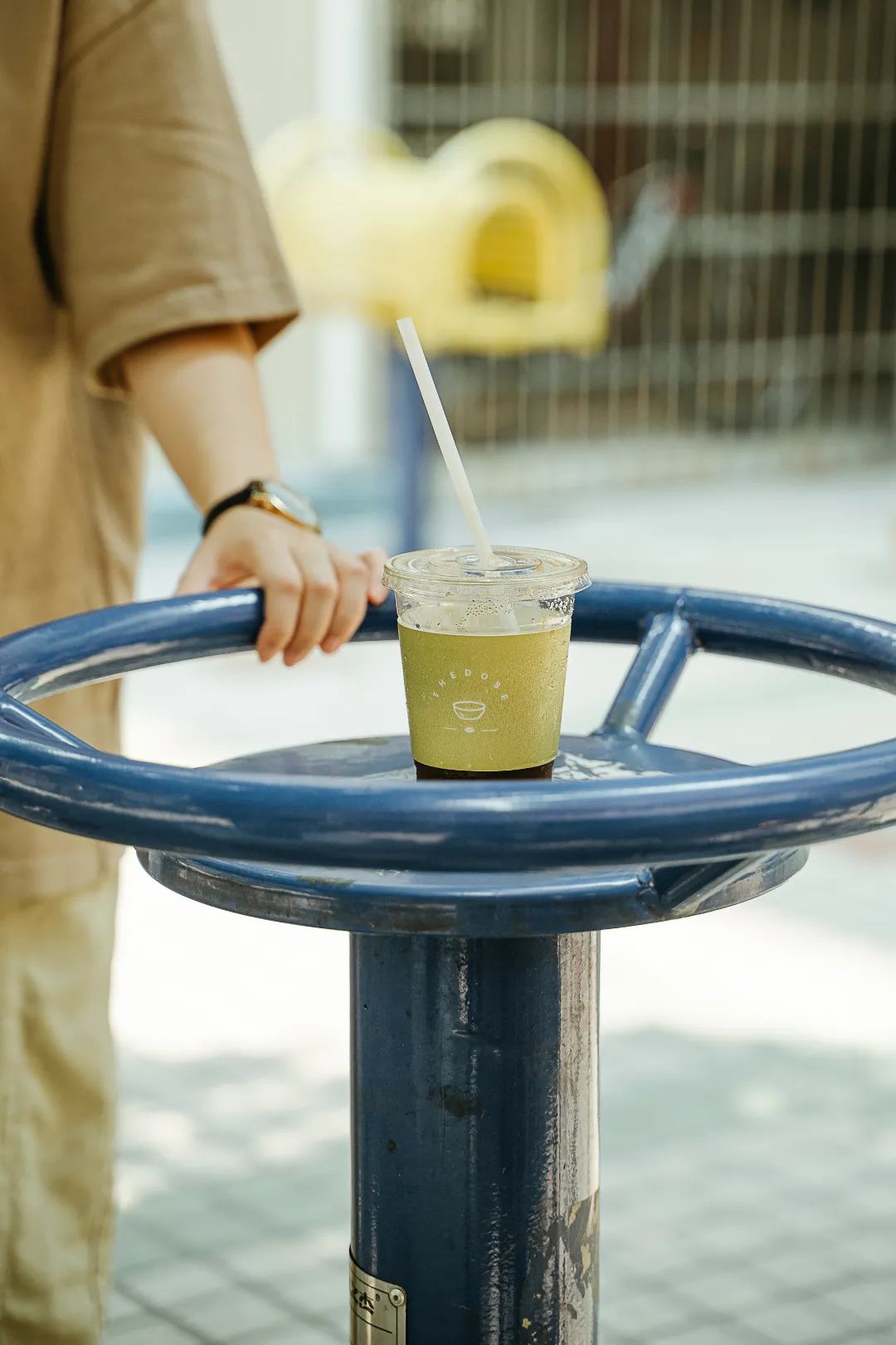 另一款人气单品「清新Dirty」是柠檬草风味的奶咖,清新不腻口。室外有零散的几张桌子和狭长的吧台,高大的树影过滤掉部分阳光,不会直射却很有暖意。