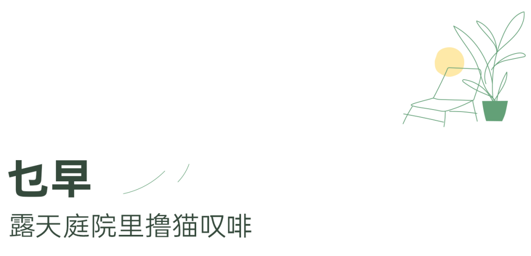 店里布置成了禅房风格,分为户外露营区、庭院小径区和室内禅意水吧区。门口的地台位很少见,坐在竹林松影下,踩着小石子看书叹啡,还有店宠猫咪过来蹭蹭,不知不觉就虚度了一个下午。