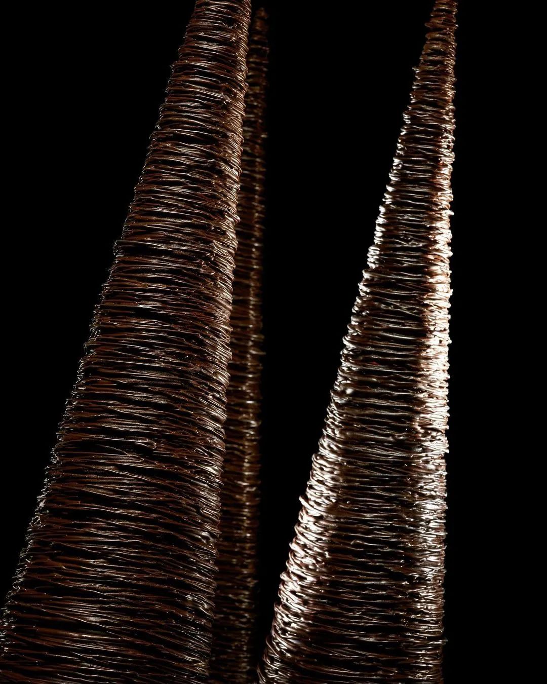 与其说,他的想法天马行空。不如说,这些作品中散发出来的那种纯粹与唯美,都离不开他对于巧克力的喜欢以及极致探索。在别人还在想法设法,把巧克力做得好吃并且增强装饰性的美感时,Stéphane Leroux思考的却是生动还原生活中的建筑、动物等原貌,利用巧克力的可塑性,上升为美学作品。比如从波纹中,获取灵感: