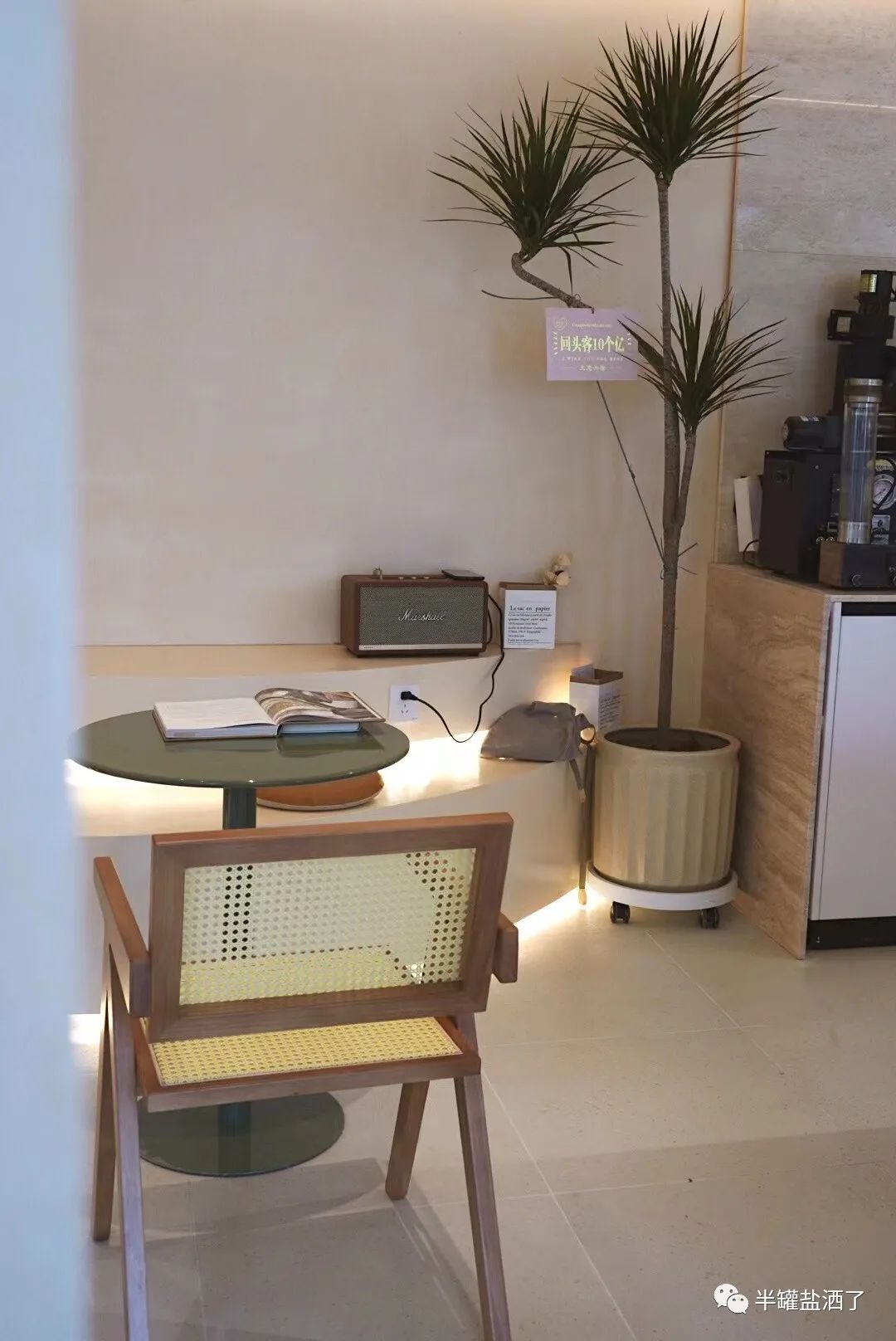 一层是复古咖啡馆,二层是剪发沙龙,这种组合也是不多见,后来听咖啡师姐姐说,因为大家都喜欢喝咖啡,就在一层做了一个咖啡区域,听着就很酷;而且一层是真的小巧复古又好看。