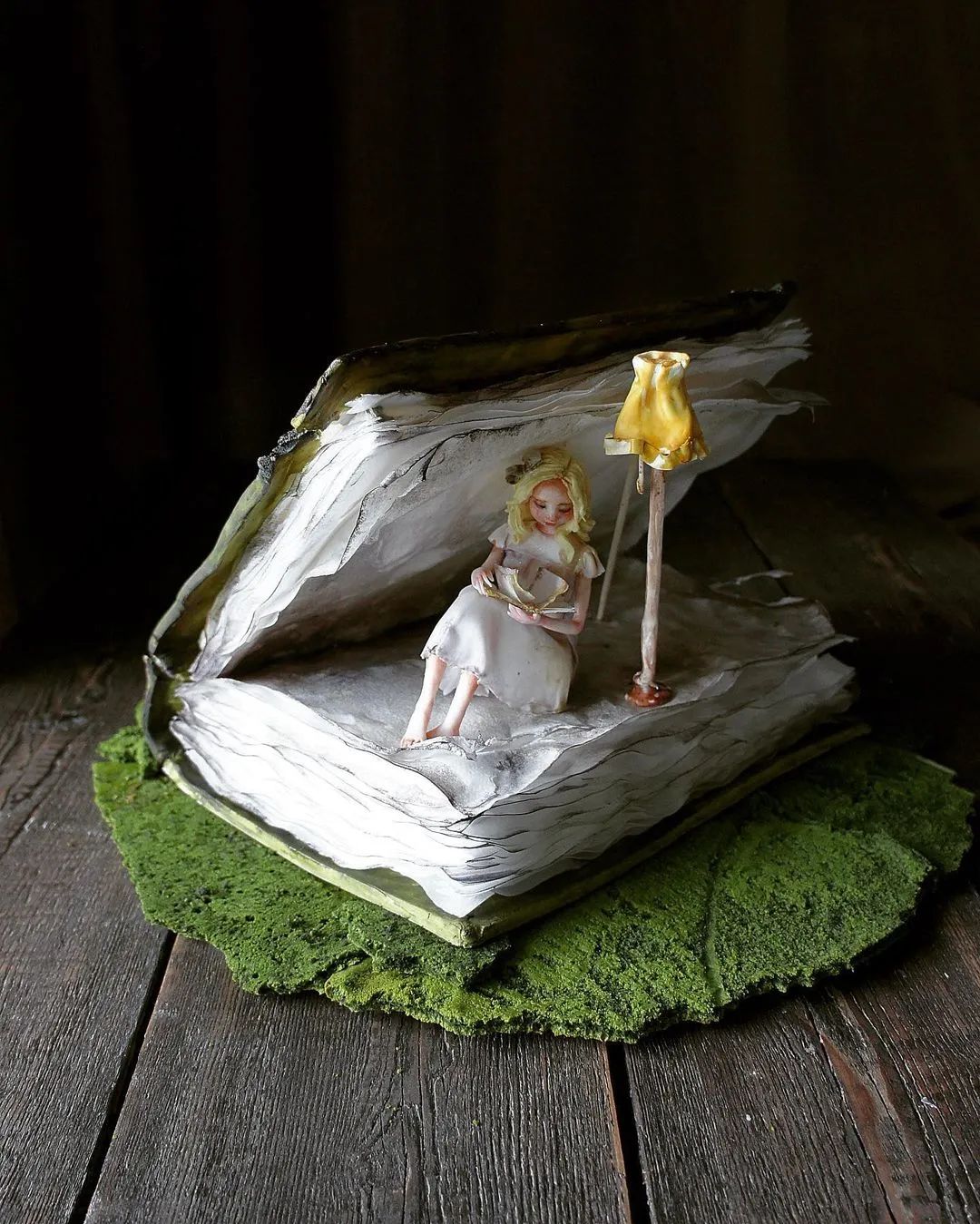 搭配整体的绘图布局,与富有光泽的3D人偶、动物、道具,融汇出一幅欲说还休的意境,虽说极耗功底,但成品堪比艺术。
