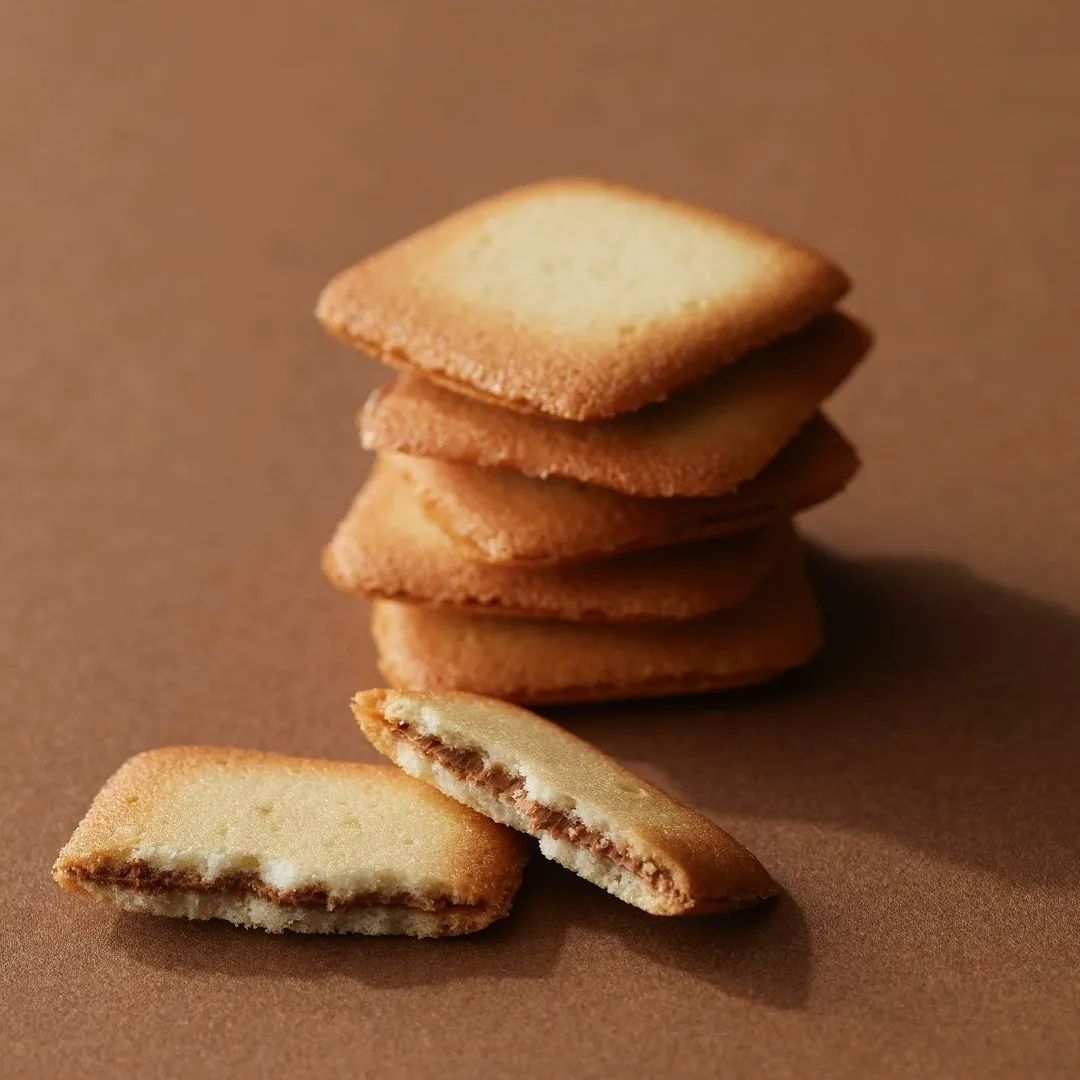 (截图来源:小红书)小红书上的笔记反馈,饼干稳稳占据了伴手礼系列中头部位置,其余的西点就是上篇文章中说的玛德莲、费南雪之类的了。饼干的优点,一目了然。制作简单,造型多样,口感酥脆,体积小巧,易于分装,便于运输……但!似乎真正意义上打通国内伴手礼市场的饼干,好像也不是那么容易列举。倒是日本传来的好几款明星伴手礼中,饼干就占了好几个名额。所以,通过这些好吃伴手礼饼干,我们能取些什么精华呢?01夹心设计>>北海道的白色恋人,将白巧克力加入两片猫舌饼干中。厚实的巧克力层,香醇可口,还能间接维持饼干的整体形状。