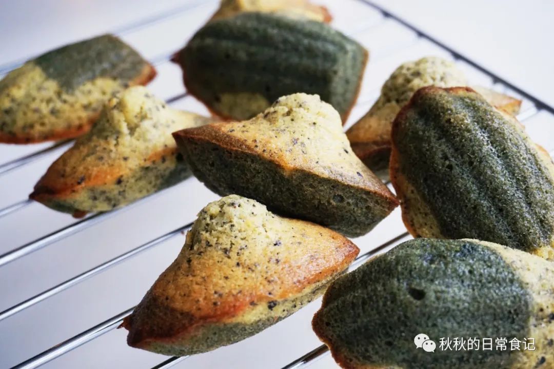 突发奇想地用艾草和黑芝麻的组合做成玛德琳蛋糕,成品味道和谐地令人惊喜。咬一口,艾草和黑芝麻香气扑鼻,熟悉的中国式的味道结合西式甜品质感,有趣又特别,目前网上或是甜品店都没见过这个搭配哦!