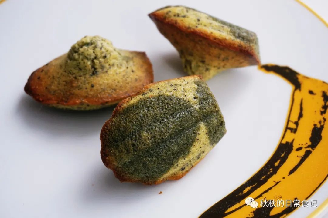 黑芝麻和艾草的结合让人想到青团,但这个组合做成玛德琳蛋糕是完全不一样的质感和香气,非常朴实无华,但是越嚼越香!那么特别的玛德琳,真的不要试试看嘛?高兴的话,可以把融化的白巧克力浇在玛德琳上。这颜值,这独一无二的口味组合,拿去送人倍儿有面子吧 (●ˇ∀ˇ●)