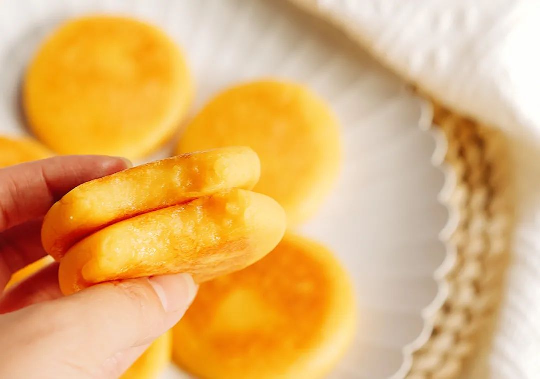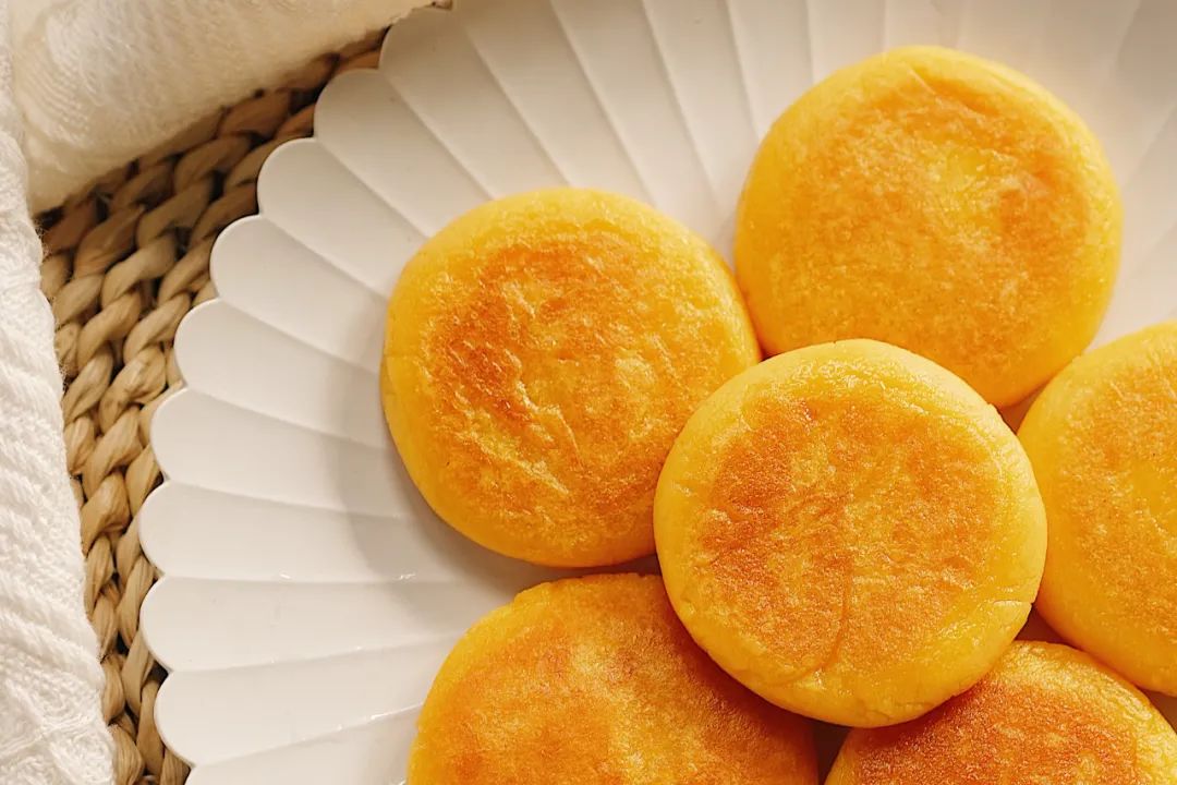 金黄香糯的红薯饼就做好了,是不是超级简单快手!起锅就吃了两个,这个天气真的太适合吃这种食物了嗷!!