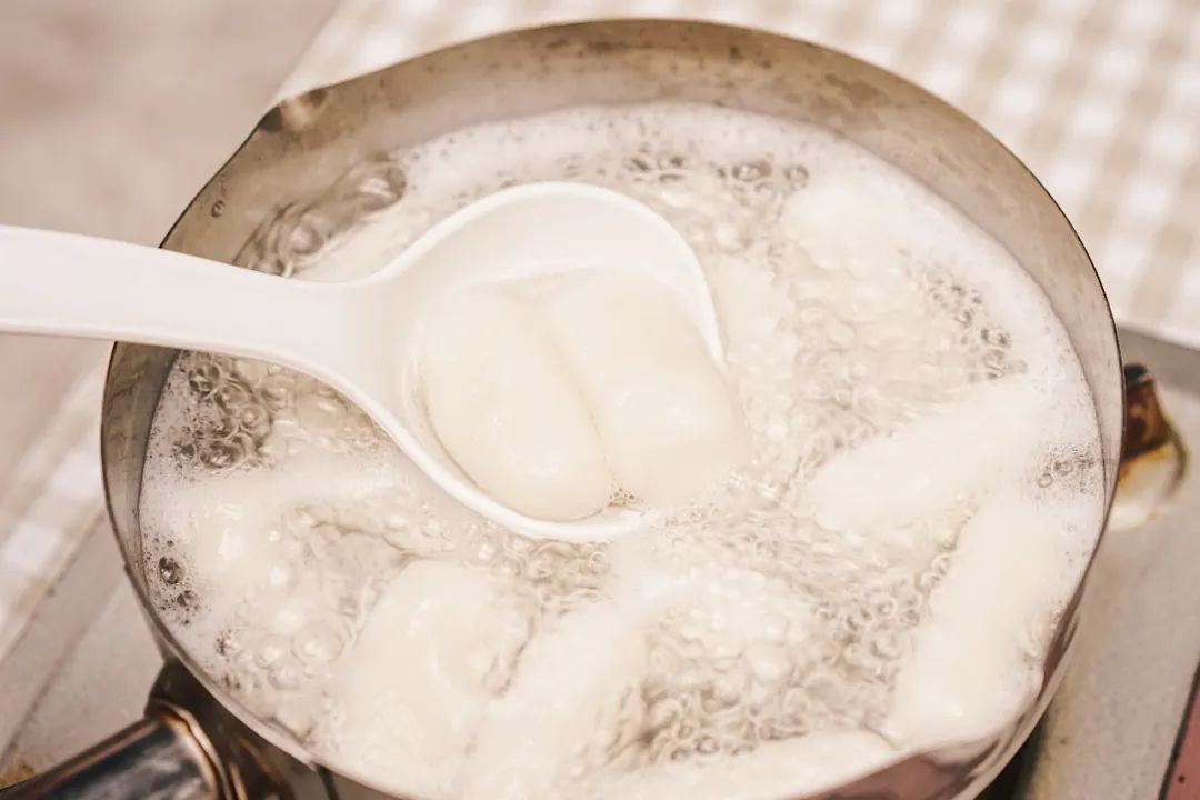④水烧开后放入山药糯米条,煮至全部浮在水面上捞出来备用。